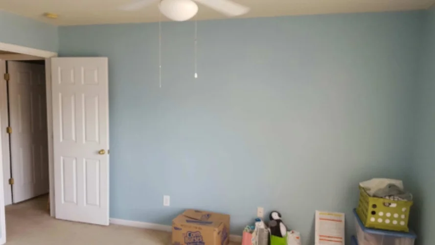 Harold and Tiffany live in my home state of South Carolina, so committing to help them design the room would need to be done from 1,200 miles away. During our first virtual consultation via FaceTime, Tiffany gave me a tour of the bedroom they’d be transforming, already painted a solid light blue by the previous homeowners. They explained they wanted to keep the room blue with accents of white and grey. They also already selected a crib set from Toys R Us and wanted to play off the giraffe theme with additional wild animals.