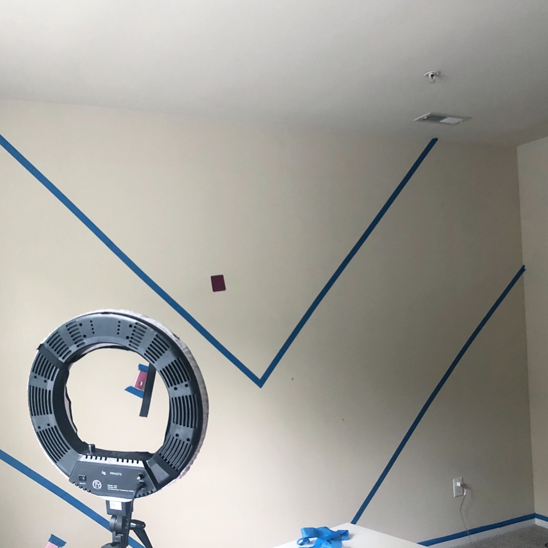 Once all the shopping was done, I came back two days later to begin painting. Now let me tell ya…I have a newfound respect for professional painters and accent wall DIYers! This was such a tedious process perfectly positioning the 3M Scotch Blue painter’s tape on the wall stopping to measure, level and reconsider spacing with every inch of tape, and backbreaking work painting the entire room with only paint brushes and rollers (TRUST ME, I’m hiring someone next time! LOL). We weren’t even certain what design the accent wall would have before I arrived that day. I knew Zaria hated chevron stripes, but I had this vision of a V-shaped, ombre design in my head and I’m so grateful I convinced Zaria to let me try it out. “I’m open!” she’d always say with a confident nod and enthusiastic shrug. With the right colors, zero sleep and a TON of effort, the room’s new colors slowly came to life!