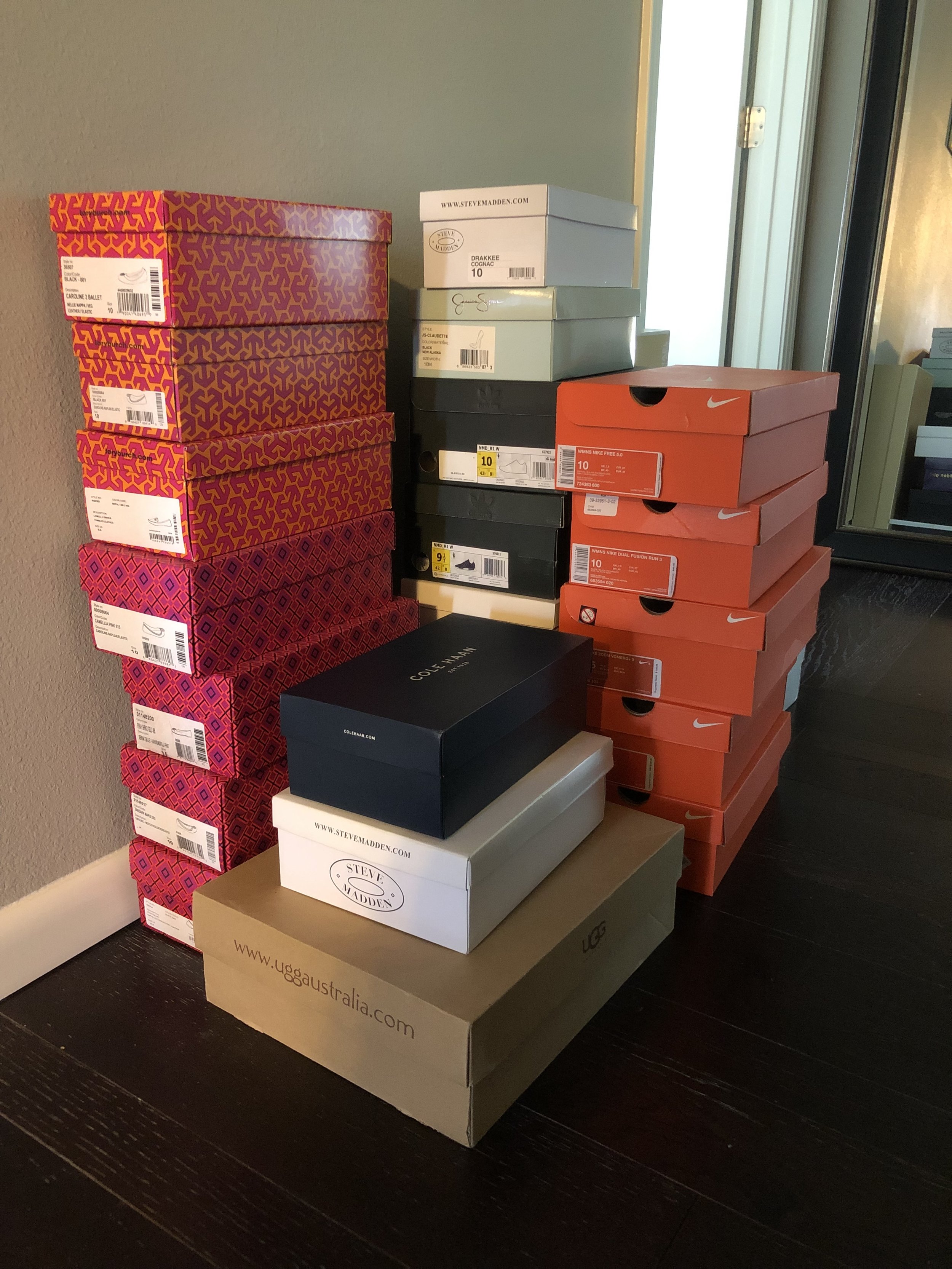 Now, for the big kahuna, my walk-in closet. I procrastinated so long to tidy up my closet, but it got to a point where it was just stressful walking in there. Item by item I pulled everything out and threw it on the bed, then brought out the shoe boxes and stacks of accessories hiding behind the door.