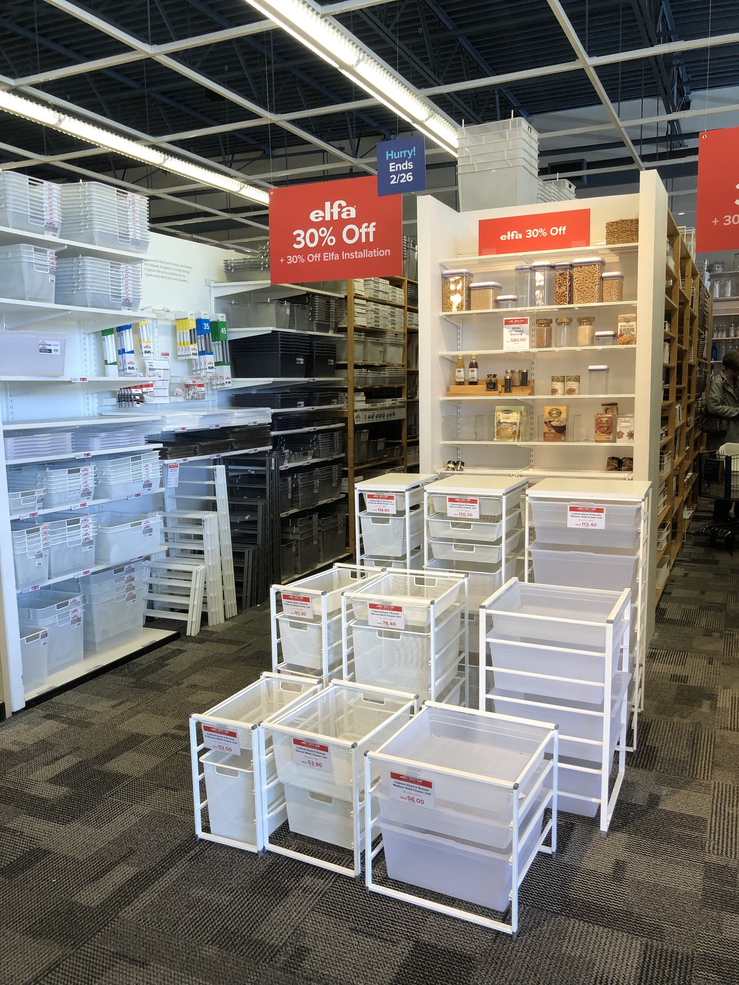 Crazy right? UGH, I know. Having so many clothes, shoes and bags may make some feel rich, but honestly, looking at this mountain of materials just made me feel sick. I couldn’t believe how many clothes I’d accumulated in the four years I’ve lived in San Antonio and how few of the items I actually wore. Even worse, this is just ONE of the four closets in my house! So began the task of sorting through all of the clothes and getting rid of the items that didn’t spark joy. There were some garments that I didn’t like, no longer fit or were in poor condition that would be put in separate stacks for resale or donation. I also relocated my cocktail and formal wear into my guest room closet and separated the seasonal items such as bathing suits, scarves, hats and gloves. Once the closet was cleaned out, I’d begin putting items back into the the closet sorted by type, style and color, one hanger at a time. I made a few purchases to make life easier in my closet and replace old broken bins that I’d kept my endless collection of t-shirts, pajamas and miscellaneous clothing in. In Target, I found these beautiful pink and natural baskets from the OpalHouse line that would help me hide away flip flops, beachwear and winter accessories while adding a pop of color to the space to match my Safavieh runner on the floor. I also purchased two Elfa Start-a-Stack organizers from The Container Store. Luckily the entire Elfa collection was 30% off and putting the shelving together required zero tools and took all of 15 minutes to assemble. Even after purging through most of my t-shirts, I had more than enough room to store all of the folded items I decided to keep.